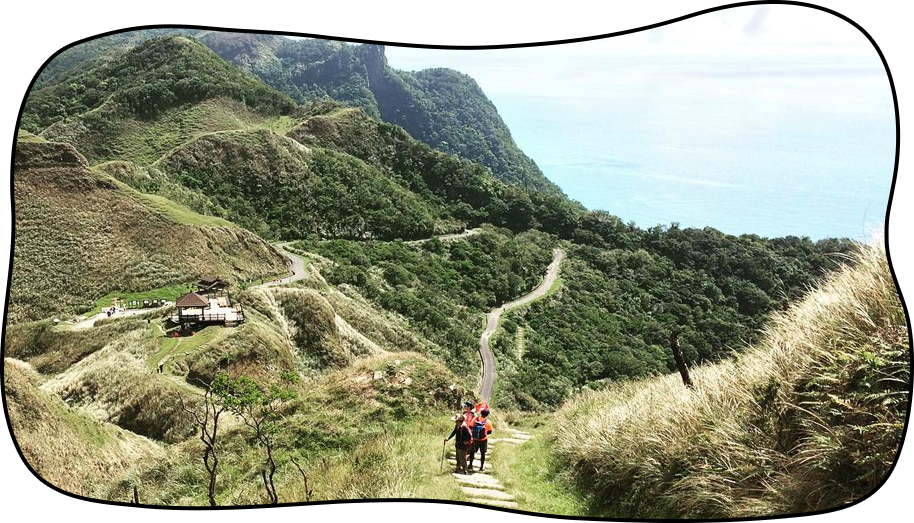 過了「虎字碑」,一眼望去,到處是半人高的芒草,正如其名「草嶺」。從埡口觀景亭上放眼望去,可以看見遠處的海岸線和宜蘭線鐵路,還能看見隔海相望的龜山島。過了埡口觀景亭,可折返或走約一小時路程,來到大里遊客服務中心,結束草嶺古道之旅。